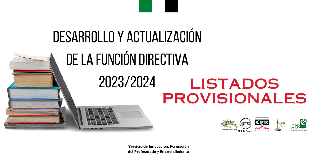 Se publican los listados provisionales en los cursos de Desarrollo de la Función Directiva y Actualización de la Función Directiva 2023-2024. Clic en la imagen.