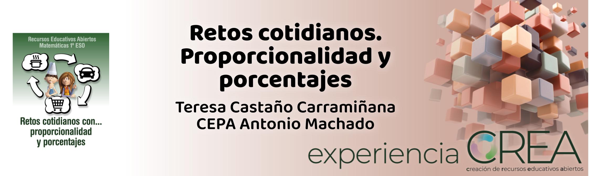 Teresa Castaño Carramiñana es docente en el CEPA Antonio Machado de Zafra. Durante este curso va a utilizar en el aula el REA Retos cotidianos. Proporcionalidad y porcentajes del Programa CREA con su alumnado.