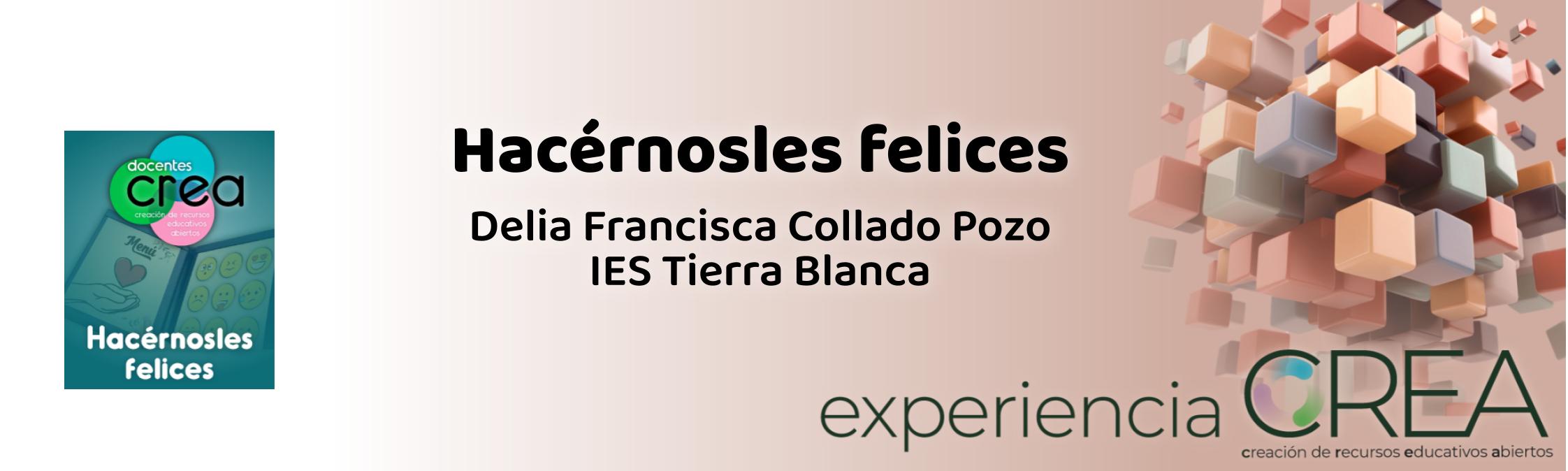 Delia Francisca Collado Pozo es docente en el IES Tierra Blanca de La Zarza. Durante este curso va a utilizar en el aula el REA Hacérnosles felices del Programa CREA con su alumnado de 1º ESO (ANEAE)