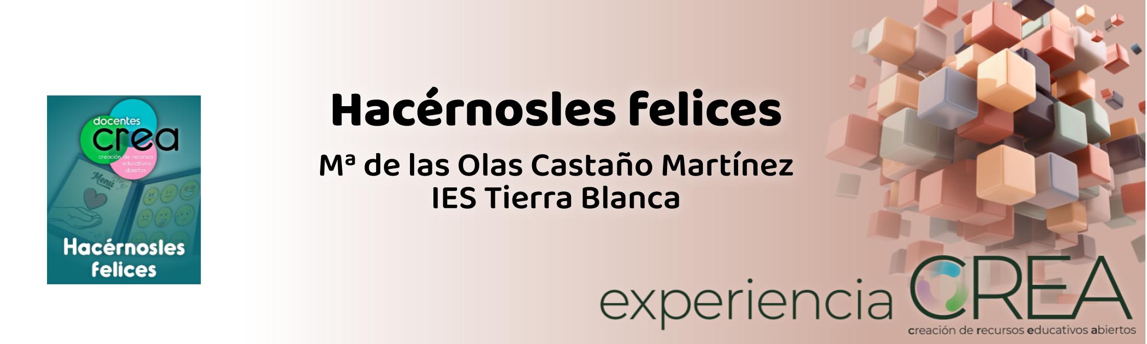 Mª de las Olas Castaño Martínez es docente en el IES Tierra Blanca de La Zarza. Durante este curso va a utilizar en el aula el REA Hacérnosles felices del Programa CREA con su alumnado de 1º ESO